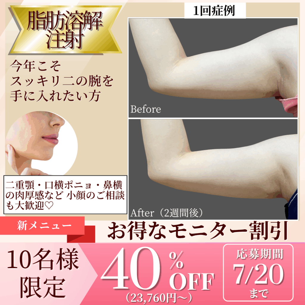 【7/20まで!10名限定】脂肪溶解注射40%OFFモニター募集💉
