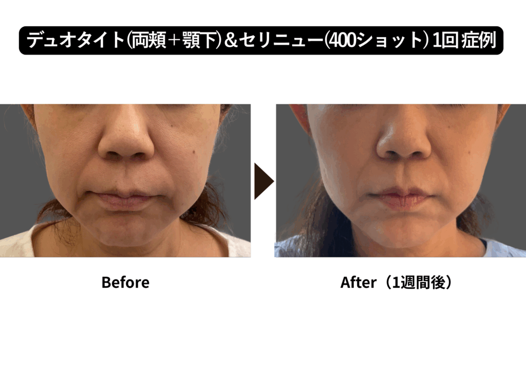 症状の具合としては、たるみの原因が皮膚のたるみだけの問題か、または脂肪下垂(脂肪移動)も影響しているのか、それを見極めることが重要です。前者の場合、セリニューだけでも大きな改善が見込める可能性が高いです。もちろん後者の方もお受けいただくことができ、効果を実感いただくことはできます。